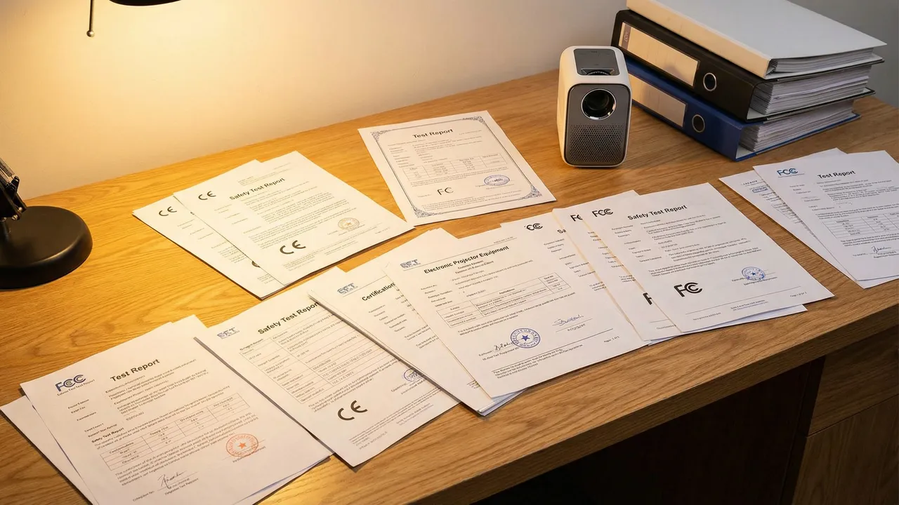 Projectors emitting concentrated light must comply with IEC 62471 photobiological safety standards — Risk Group 2 or lower for consumer products. Testing costs $2,000-4,000 per SKU at labs like TUV or Intertek. Amazon and EU marketplace platforms increasingly enforce this requirement and will delist products lacking valid test reports. Budget 4-6 weeks for testing and report issuance.